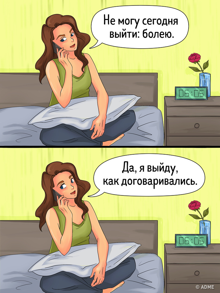 В эту категорию смело можно записывать всех, кто стремится побольше отдыхать и поменьше работать. Разумеется, это обыкновенное человеческое желание, однако некоторые из нас частенько перегибают палку. Например, если сотрудник компании за год оформил несколько больничных, взял пару отпусков и бесчисленное количество отгулов, а при всем этом умудрялся еще и опаздывать, психолог бы поставил ему антисоциальное расстройство личности. Правда, для этого нужно, чтобы наблюдались еще и такие симптомы: