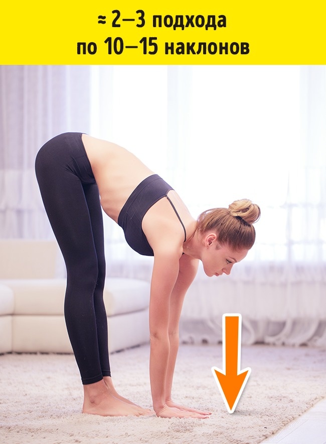 - Наклонитесь вперед, не сгибая ноги в коленях.