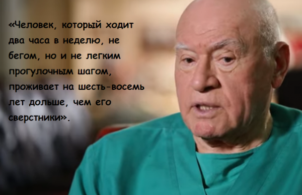 По словам Бокерии, ходьба является наилучшим способом для оздоровления человека. Утверждение возникло не на пустом месте. В доказательство кардиохирург приводит результаты масштабного международного исследования, которое подтвердило эффективность ходьбы. Выяснилось, что те люди, которые регулярно занимаются ходьбой по два часа в неделю, живут на 6-8 лет дольше, чем те, кто, образно говоря, привязан к дивану и телевизору. Поэтому Лео Бокерия рекомендует ходить всякую минуту, как только представляется такая возможность.